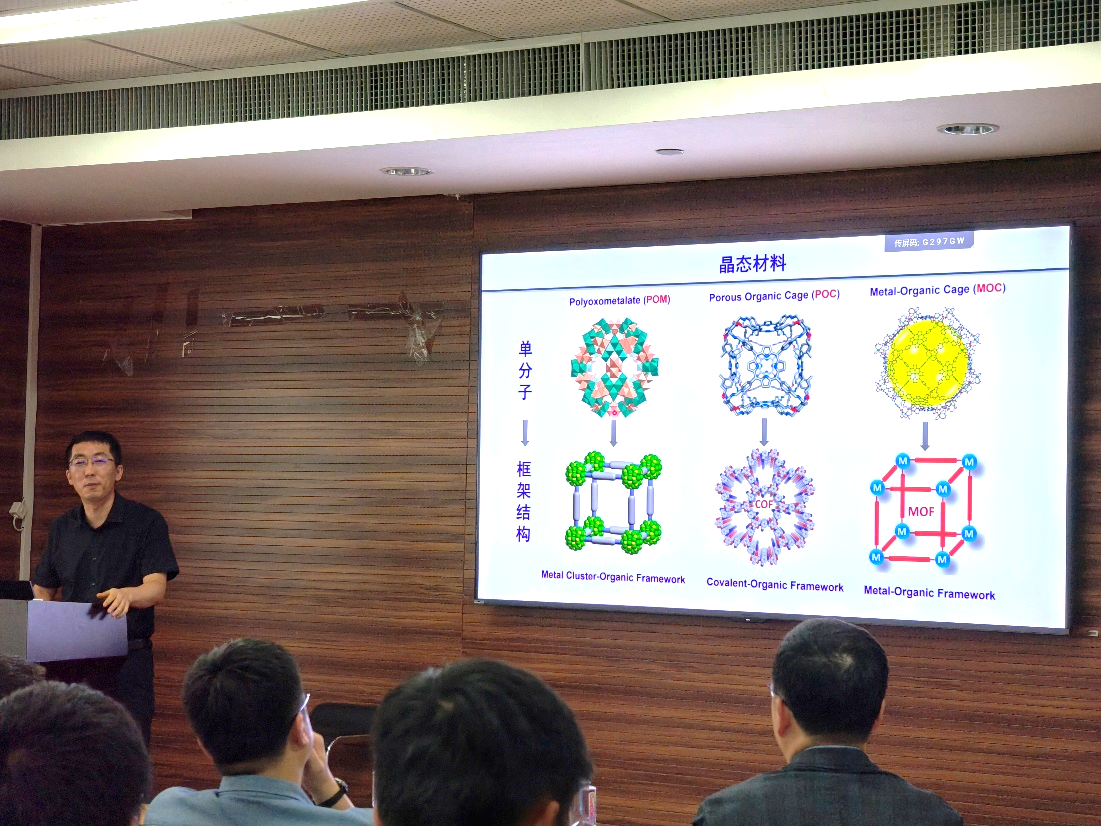 兰亚乾教授长期从事晶态多孔材料的设计合成,及其在光、电、化学能等清洁能源领域的转化与应用研究,目前已在光解水、CO2还原、固态电解质材料等应用领域取得了一系列重要进展。本次报告,兰亚乾教授从具有明确晶体结构、结构周期分布、排列方式可控等优势的异基元分子结材料出发,详细介绍了氧化-还原分子结光催化剂的设计组装理念与方法,并从人工光合作用、光催化水分解、光催化合成过氧化氢、光催化有机氧化转化四个应用领域展示了分子结催化剂优异的光催化活性与选择性。此外,兰亚乾教授又进一步提出了三/多基元分子结的理念,成功制备了光敏-光热型分子结作为串联催化剂,实现了从烯烃到环碳酸酯的光驱动一锅式串联反应。