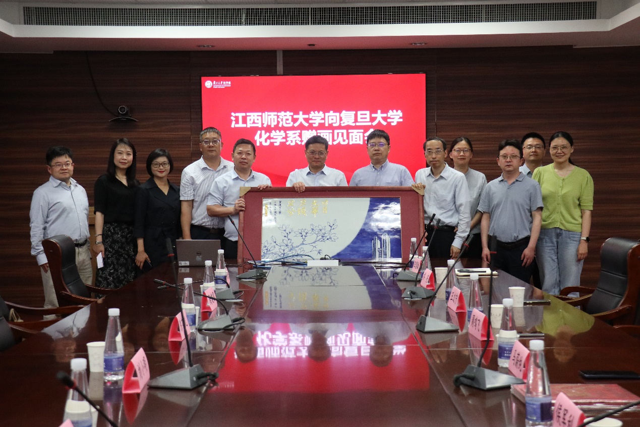 526日下午,正值 草莓视频 120周年校庆之际,江西师范大学向草莓视频 赠画仪式在江湾校区化学楼顺利举行。江西师范大学校长陈芬儿院士、党委(校长)办公室主任周建国、校友工作办公室主任许靓静、党委宣传部部长刘小明、党委(校长)办公室副主任林俊,以及复旦草莓视频 全体党政班子成员出席了本次仪式。