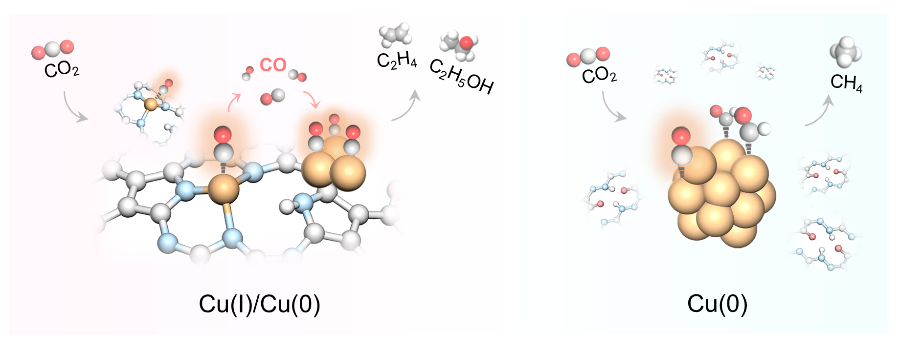 研究团队通过设计具有明确配位结构的铜单位点模型催化剂,采用多种原位表征手段探究了近邻配位壳层和外部取代基对铜单位点重构行为及产物分布的影响机制。研究发现,结合能与电荷分布是调控结构演变的关键描述符,重构形成Cu(0)和Cu(I)两种活性位点;结合近边结构模拟,揭示了Cu(I)的真实结构,并提出了全新的Cu(I)N3H-*CO和Cu(0)位点的协同催化反应机制。这一工作不仅深化了对铜基单原子催化剂重构机制及构效关系的理解,也为开发具有高稳定性和可控产物选择性的单原子催化剂提供了新思路。