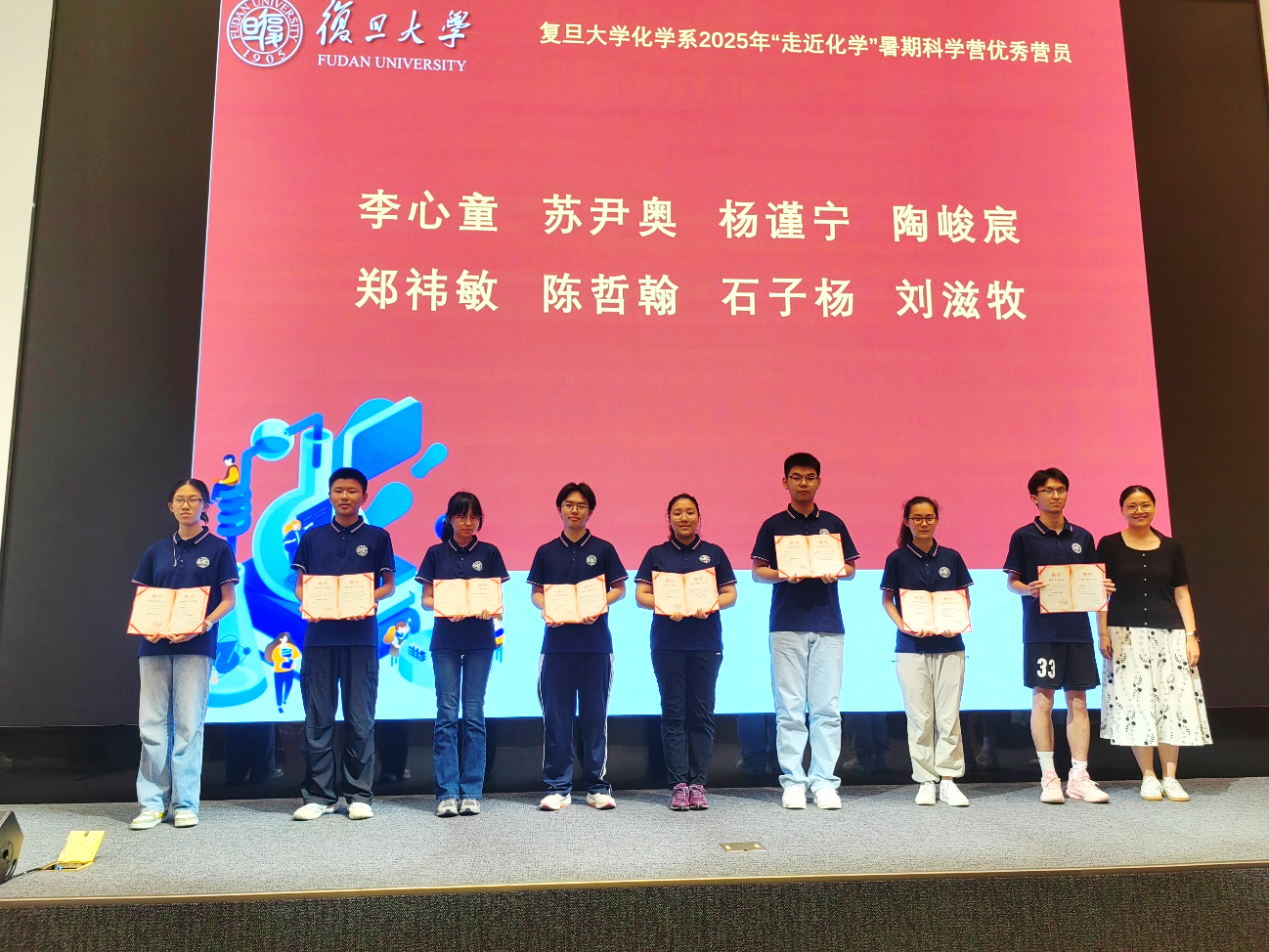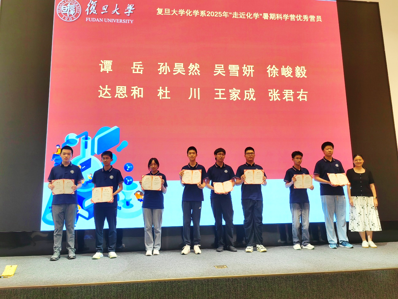 充实而有趣的科学营圆满落幕,科学的种子已悄然播下。这段在复旦度过的夏日,将成为营员们未来探索化学世界、追寻科学梦想的宝贵起点。