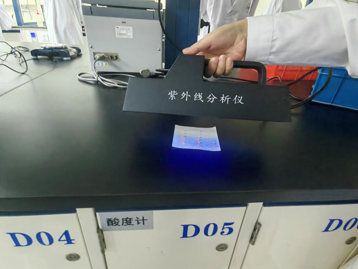 通过该实验,同学们学习了稀土铕元素的发光原理,在老师指导下合成了铕配合物,并在紫外灯下见证了鲜艳而明亮的稀土发光现象,直观感受到稀土元素的神奇,认识到中国稀土产业与前沿研究的重要性。