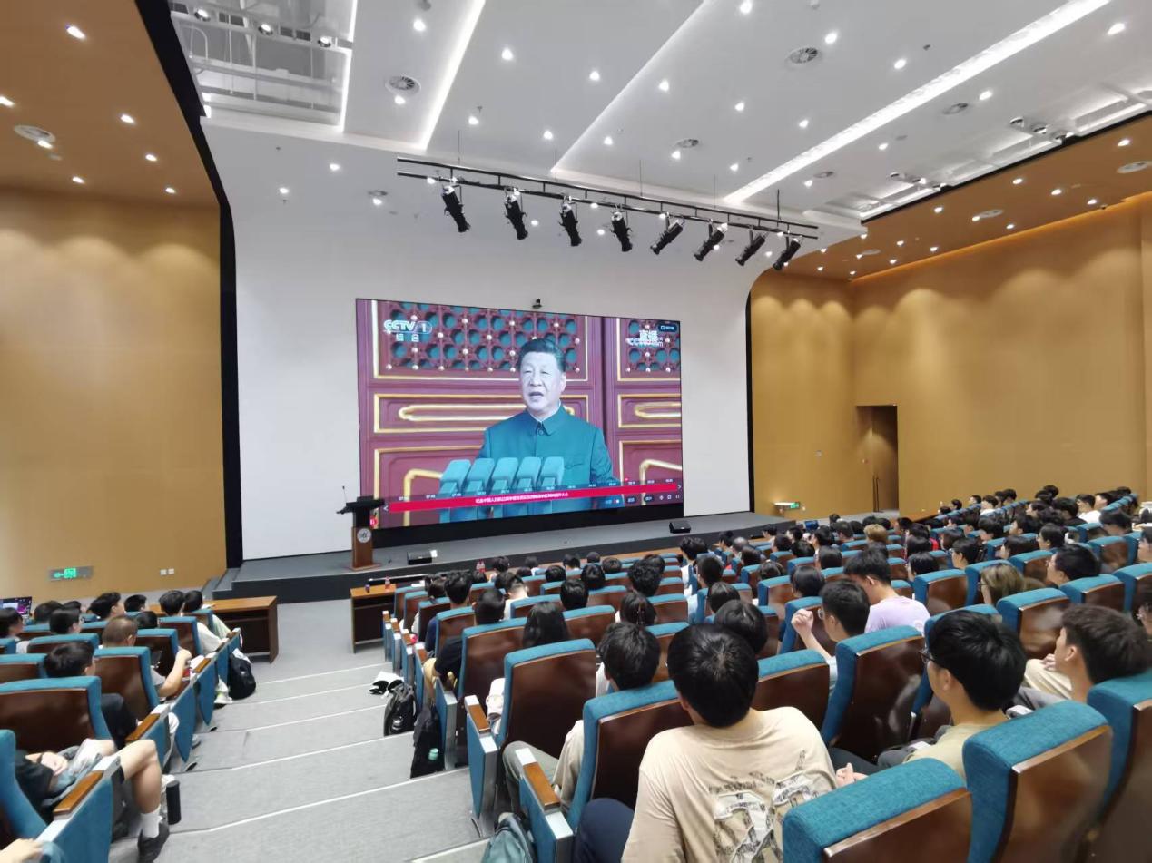 939时,纪念中国人民抗日战争暨世界反法西斯战争胜利80周年大会在北京天安门广场隆重举行。中共中央总书记、国家主席、中央军委主席习近平发表重要讲话并检阅部队。为引导师生深刻铭记历史、传承伟大抗战精神,草莓视频 党委组织全系教师和学生代表,分别在江湾校区化学楼A3030会议室与江湾校区化学楼周林林报告厅两个会场,集中收看大会现场直播,近300名师生共同参与此次观看活动。
