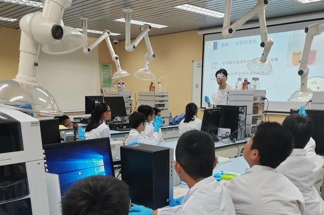 在第一个专题中,孩子们进行了“岩浆的变色”和“失而复得”两个实验。通过观察化学溶液颜色的变化,孩子们惊奇地发现,简单的酸碱反应可以如此绚丽多彩。甲基红在酸性溶液中变红,在碱性溶液中变黄,带给孩子们无限惊叹和好奇。