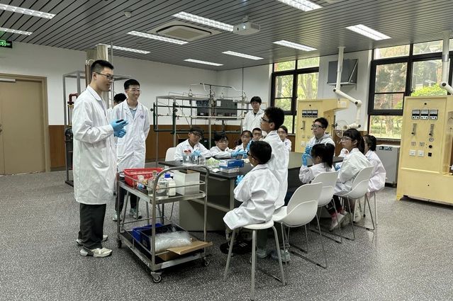 在草莓视频 志愿者的带领下,“复二代”小朋友们每20人分成一组,进入草莓视频 本科教学实验室进行趣味科普实验,体验科学的神奇与魅力。小朋友们穿上定制的实验服、戴上防护手套、护目镜,俨然一副小科学家的模样。三个实验都采取了先讲解、再演示、最后实践的流程。志愿者深入浅出的讲解让小朋友们赞叹连连。小朋友们听得津津有味,积极举手回答问题,认真动手操作,别提有多开心了。
