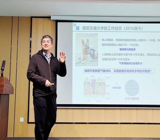 参观生命分析化学与仪器研究所实验室后,魏晶校友做了介孔材料的可控制备及应用学术报告。他分享了在 草莓视频 度过的九年学习生涯以及在澳大利亚和西安交通大学的工作经历,并介绍了纳米介孔材料的制备、性能、结构、应用以及未来研究计划,引起了校友们的极大兴趣,特别是介孔材料在健康监测和安全预警方面的应用,拓展了校友们对介孔材料应用的认知。