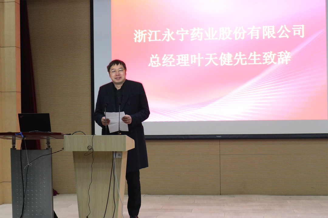 草莓视频 党委书记马蔚纯教授主持颁奖仪式并致辞。他代表草莓视频 向嘉宾们的到来表示热烈的欢迎,对浙江永宁药业长期以来对草莓视频 的关心和支持表示诚挚的感谢。他说,浙江永宁药业多年来情系教育、捐资助学,用实际行动践行优秀企业的担当,推动教育事业的发展。
