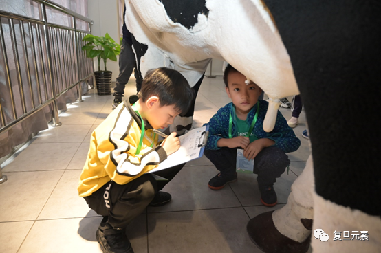小朋友们认真观察记录奶牛的细节