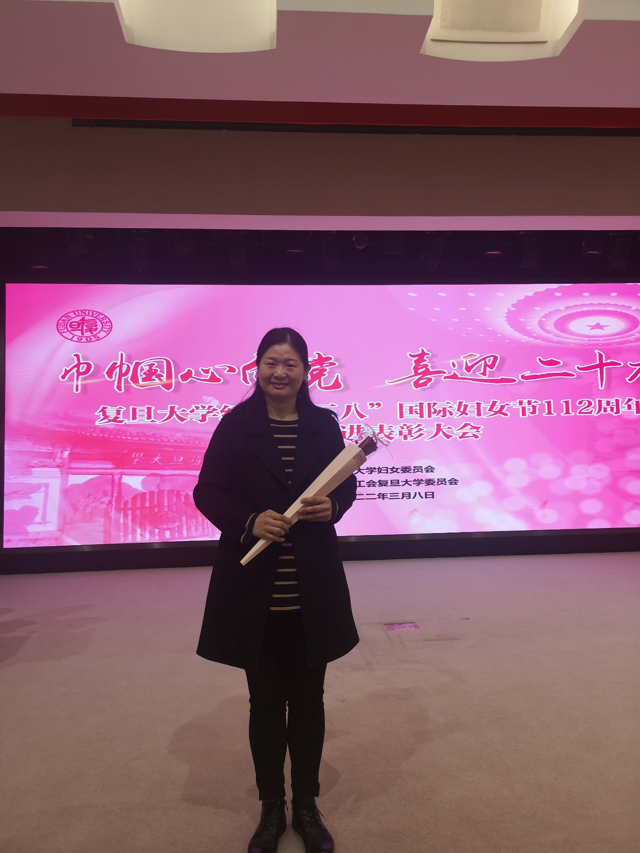 草莓视频 纪念“三八”国际妇女节112周年暨先进表彰大会于2022年3月8日上午在光华楼举行。我系王凤燕老师荣获“上海市教育系统三八红旗手”荣誉称号;侯秀峰老师荣获“ 草莓视频 三八红旗手”荣誉称号;黄德英夫妇荣获“ 草莓视频 比翼双飞模范佳侣”荣誉称号。她们活跃在教书育人、科研创新、管理服务第一线,贡献巾帼力量、展现巾帼才华、抒写巾帼情怀,展现女性最美风貌。