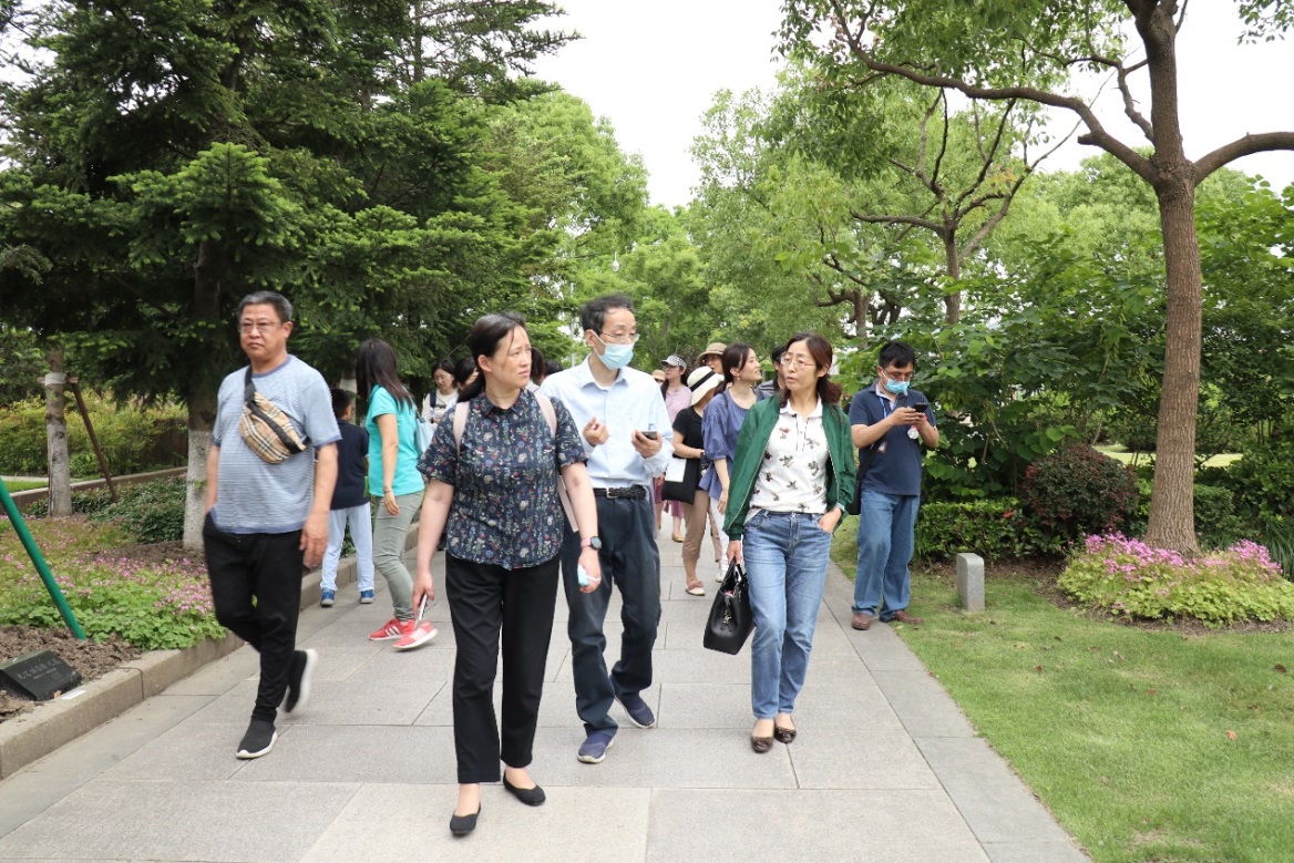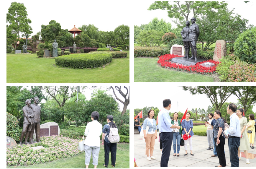 随后老师们参观了纪念园区,这里安息着开国将领粟裕大将、陈毅元帅,也设置有纪念新文化运动先驱们的雕塑群。在场老师们随着讲解员的脚步走过每一座雕像面前,驻足凝望,向革命先烈、革命前辈们致敬,并认真聆听讲解员介绍每一座雕像背后的故事。讲解员说,总书记在给上海市新四军历史研究会百岁老战士们的回信中提出“对于中国共产党员来说,中国革命历史是最好的教科书。新时代奋斗者在奋斗前行的路上,更要不忘初心,牢记使命,朝着为民服务的方向不断前行。”生动的讲解给参观的老师们留下了深刻的印象,深感要认真回顾走过的路,不能忘记来时的路,继续走好前行的路。