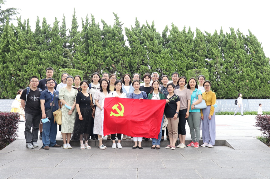 为扎实推进党史学习教育,提升草莓视频 教师凝聚力,引导草莓视频 教师学党史跟党走,把红色基因传承好、把红色传统发扬好,以更好的精神面貌迎接建党100周年,2021年6月1日结合总书记给上海市新四军历史研究会百岁老战士们的回信精神学习,草莓视频 教师一行50多人来到位于上海市青浦区福寿园内新四军广场开展“永远跟党走,育人担使命”现场教学。