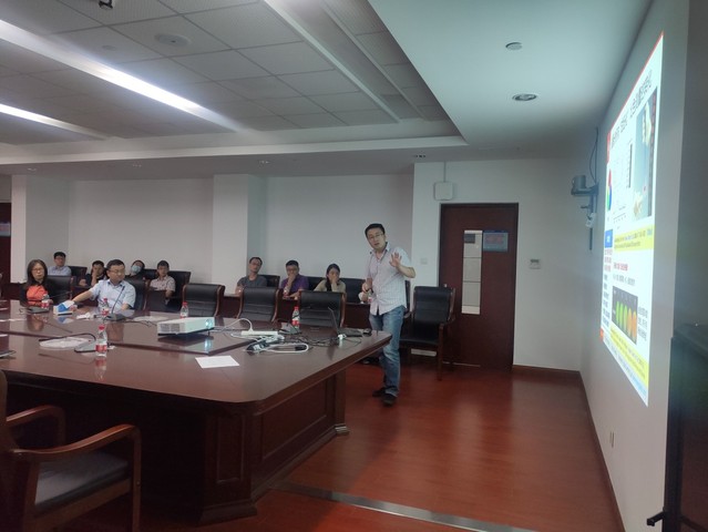 与会老师对王旭东研究员的讲述内容提出了各自的意见和看法。有的老师对氧气传感器的研究背景比较感兴趣,希望在背景介绍和研究现状方面有更详细的说明和相应的对比。有相近专业的老师,就如何侧重于基于快速测量荧光寿命系统研究,并做进一步的衍生来突出研究特色方面,提出了建设性意见。有的老师就专业用词的使用、报告内容中各部分内容应如何侧重和聚焦等方面提出了中肯的建议。还有的老师对于如何加强课题组建设表达了个人看法。讨论气氛十分热烈。
