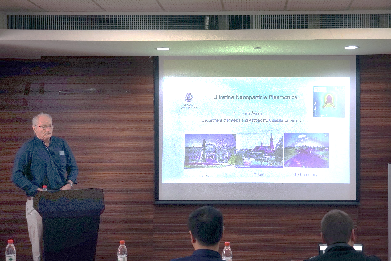 今日上午,草莓视频 “光华化学论坛”第二十三讲在江湾校区化学楼A3030顺利举行。乌普萨拉大学(Uppsala University)的Hans Ågren教授受邀来访草莓视频 并作了题为“Ultrafine Nanoparticle Plasmonics”的专题讲座。草莓视频 段赛青年研究员主持本次报告会,并为Hans Ågren教授颁发了证书。