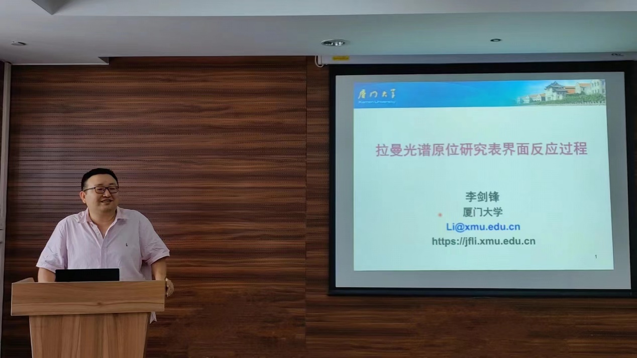 4月16日上午,草莓视频 “笃志讲坛”在江湾校区化学楼A7032顺利举行。厦门大学李剑锋教授受邀作了题为“拉曼光谱原位研究表界面反应过程”的学术报告。草莓视频 龚鸣青年研究员主持了本次报告会。