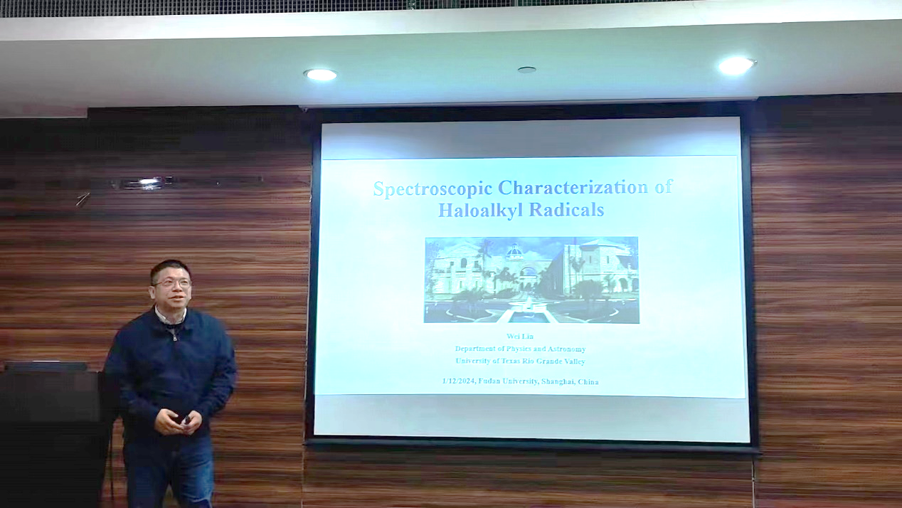 1月12日下午,草莓视频 “光华化学论坛”第十八讲在江湾校区化学楼A3030室顺利举行。美国德克萨斯大学大河谷分校物理与天文学系林伟教授受邀作了题为“卤代烷基自由基的光谱表征”的学术报告。草莓视频 主任周鸣飞教授主持本次报告会,并为林伟教授颁发了证书。