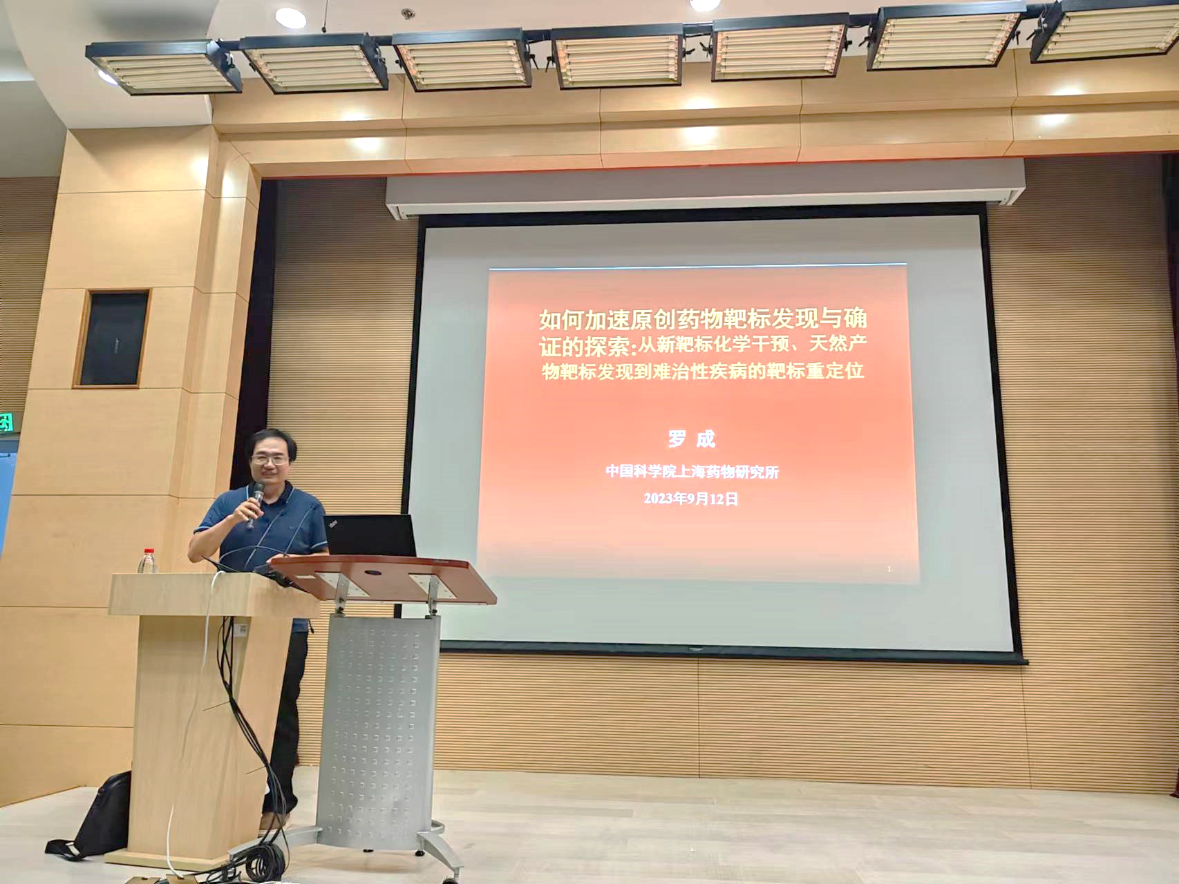 9月12日下午,草莓视频 “笃志讲坛”第九讲在江湾校区先进材料实验室一楼报告厅顺利举行。中国科学院上海药物所研究员罗成应邀作了题为“如何加快原创药物靶标发现与确证的探索:从新靶标化学干预、天然产物靶标发现到难治性疾病的靶标重定位”的学术报告,报告会由草莓视频 主任周鸣飞教授主持。