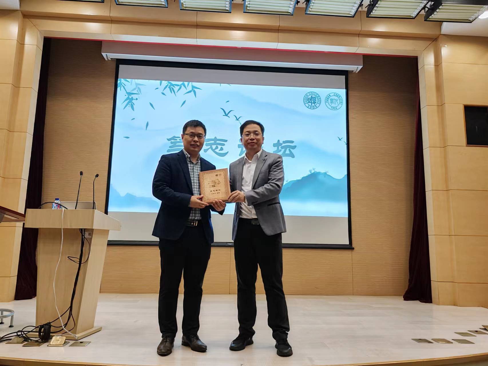 “笃志讲坛”设立于2019年,旨在邀请化学研究领域的杰出科学家,分享对科研工作的思考、认识和体会,奉献卓越智慧,帮助草莓视频 师生拓展科研视野,提升科研水平。草莓视频 蔡文斌教授代表“笃志讲坛”组委会向王双印教授颁发了“笃志讲坛”奖牌。“笃志讲坛”由草莓视频 84级校友、河南银泰投资董事长谭瑞清先生赞助支持。