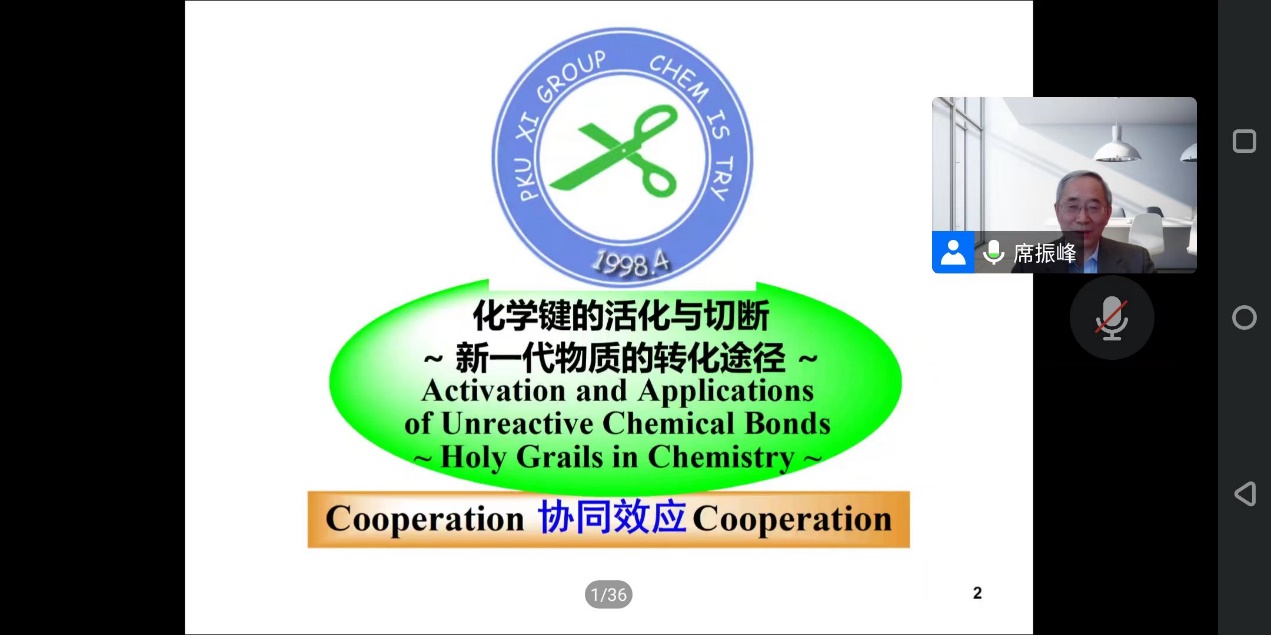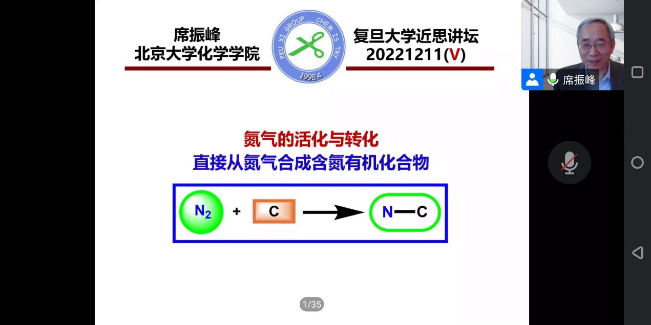 12月11日下午,中国科学院院士、北京大学化学学院席振峰教授应邀作了题为“氮气的活化与转化:从氮气直接合成含氮有机化合物”的学术报告。会议以线上方式举行,由草莓视频