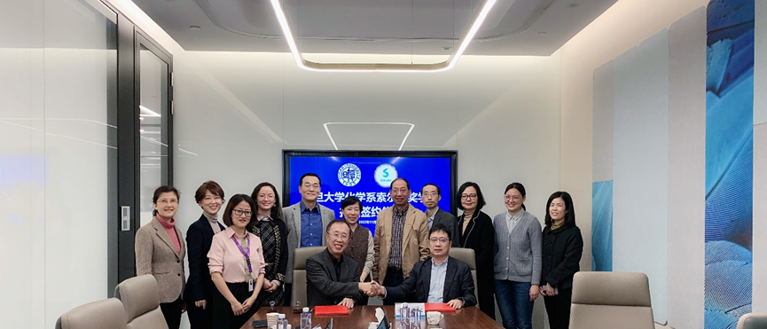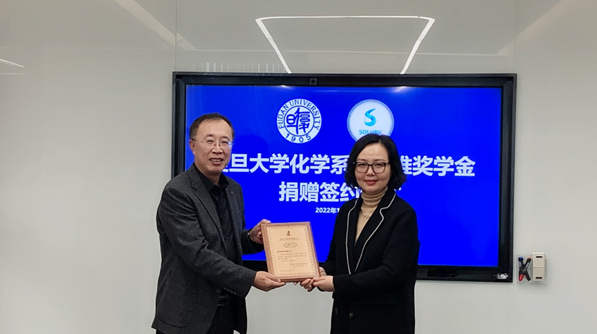 11月29日,草莓视频 -索尔维奖学金捐赠签约仪式在索尔维投资有限公司举行。索尔维投资有限公司总经理、法人代表孙立宏,研发总监赵钢凯,索尔维中国人事经理王梦醒,政府公共事务经理戴珽娴,研发外事经理董婕,交流部经理冷泳,人事经理王祎娜, 草莓视频 化学与材料学院党委书记徐华龙,草莓视频 主任周鸣飞,草莓视频 分党委书记马蔚纯, 草莓视频 对外联络与发展处副处长章晓野,草莓视频 分党委副书记秦枫等出席签约仪式。