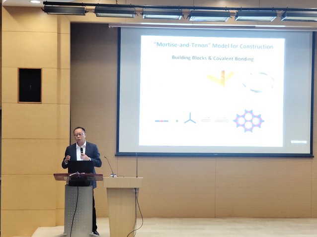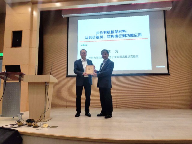 来自兰州大学的王为教授为大家分享了题为“共价有机框架材料:从共价组装、结构表征到功能应用”的报告。王为教授从共价有机框架材料的一维、二维和三维结构入手,详细阐述了从第一代的动态“B-O”键到二代的动态亚胺键的发展过程,并对功能化的共价有机框架材料应用于光催化、手性催化进行了拓展。同时还介绍了如何运用固体核磁中的动态核极化技术来表征动态三维共价有机框架材料结构的方法。