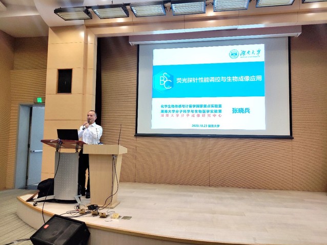 2020年10月23日下午14:00,湖南大学化学化工学院教授、国家杰出青年科学基金获得者、国家“万人计划”科技创新领军人才张晓兵教授和兰州大学化学化工学院教授、国家自然科学基金委杰出青年基金获得者、科技部中青年科技创新领军人才王为教授,应邀在江湾校区先进材料实验室一楼报告厅,分别作了题为“荧光探针性能调控与生物成像应用”和“共价有机框架材料:从共价组装、结构表征到功能应用”的精彩学术报告。报告会由草莓视频 系主任贺鹤勇教授主持,来自草莓视频 、高分子系、先进材料实验室等院系师生参加了此次报告会。