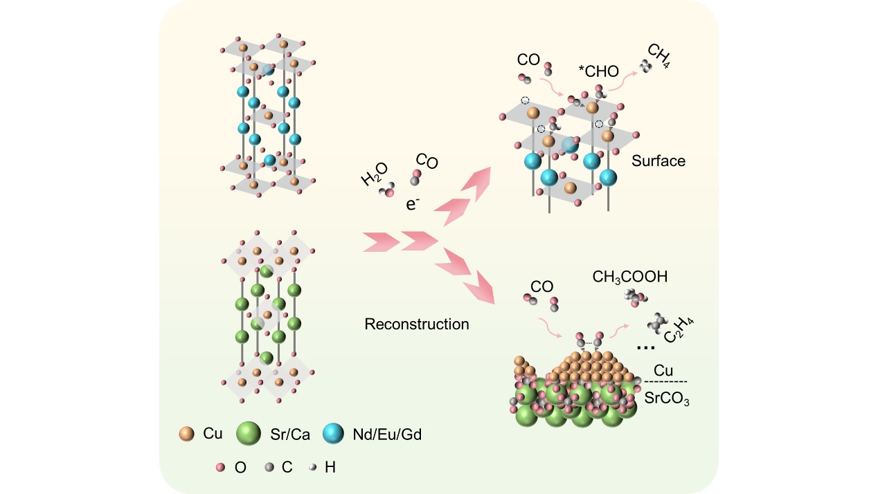 近年来,研究者发现钙钛矿氧化物因其晶格中独特的“氧储库”特性,为电催化剂结构调控提供了理想平台。然而关于这类结构在反应过程中的结构转变机制仍不清晰,尤其是A位阳离子对活性位点重构及其催化行为的影响仍缺乏系统认识。缺电子Cu物种(Cuδ⁺)在电催化二氧化碳还原(CO2R)过程中通常表现出更高的活性,然而在还原电位下,Cuδ⁺物种容易发生不可逆的结构重构,从而导致催化稳定性下降。要深入理解反应路径与表面Cu物种结构特征之间的关系,亟需构建一种可调控的Cu基氧化物平台,并通过原位表征系统揭示Cu活性中心在反应过程中氧化态及配位环境的动态演化规律。