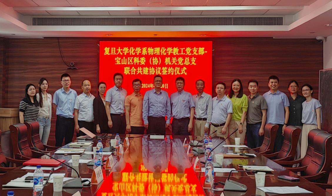 物理化学教工党支部与宝山区科委(协)机关党总支签署党建合作共建协议,双方就推动更深层次、更广领域合作开展座谈,共谋科技创新与人才培养的新篇章。