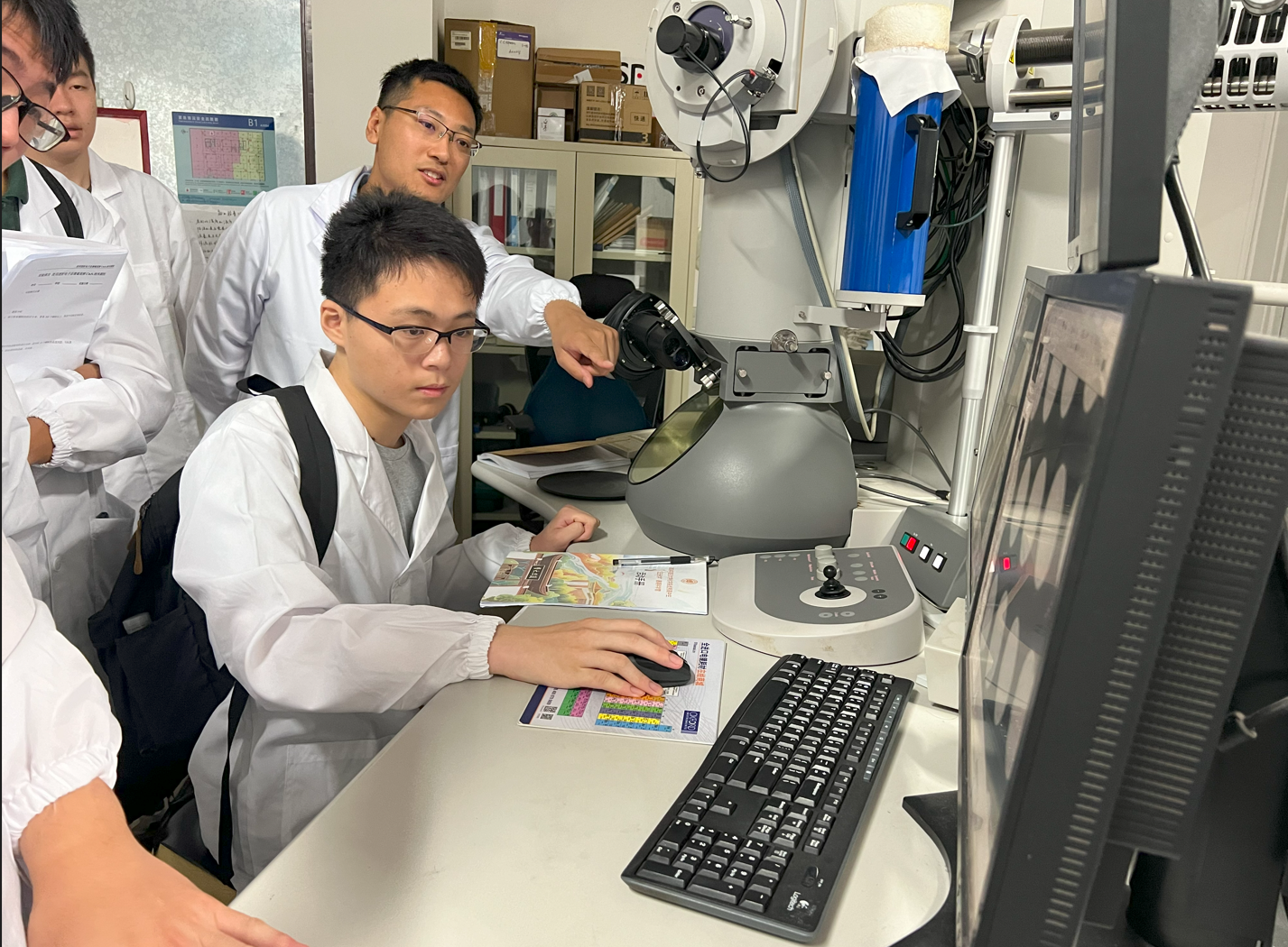 “我所在的学校根本没有配置透射电子显微镜,更别提能够亲眼看见、亲手操作它们的机会”,先进的仪器使张一凡同学格外惊喜。杨俊喆同学也对扫描电镜和透射电镜的使用印象深刻,“因为它们开拓了我的眼界,让我深入了解了高精尖的仪器和分析方法”。