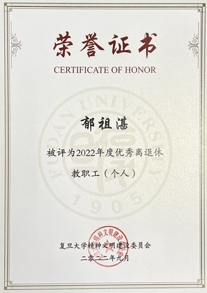 祝贺郁祖湛老师被评为” 草莓视频 2022年度优秀离退休教职工“