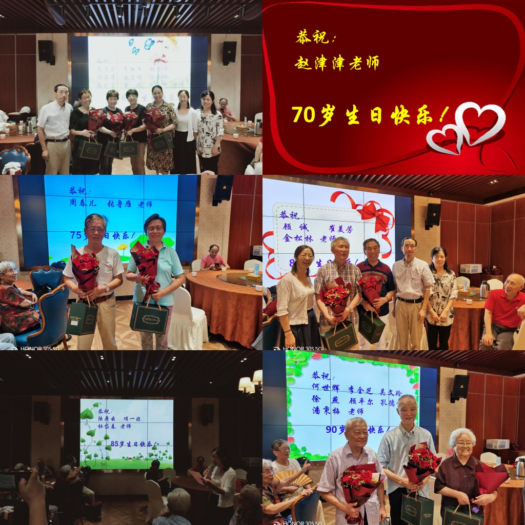 随后,刘永梅老师主持“祝寿活动”并宣读寿星名单。伴随着温馨的生日快乐音乐旋律,马书记向寿星们送上了鲜花、生日礼物和诚挚的祝福。今年草莓视频 共有25位“逢五逢十”过生日的退休老师,他们上台接受了大家的祝福并发表了寿星感言,表达了对于今天生活的快乐感受和对草莓视频 的美好祝愿。