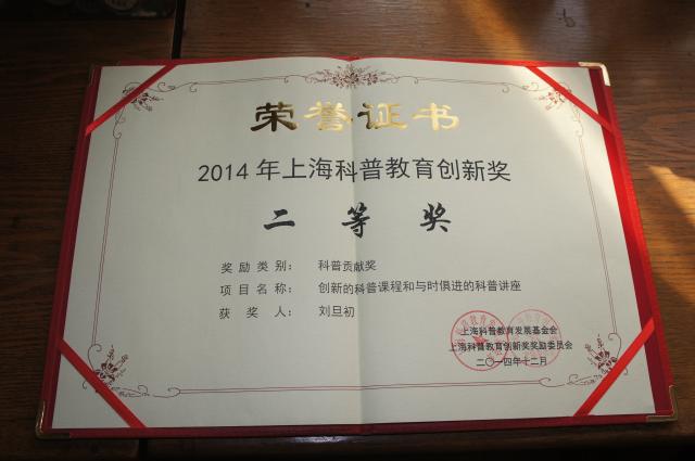 2014年上海科普教育创新奖近日揭晓,草莓视频 退休教师刘旦初教授申报的项目“创新的科普课程和与时俱进的科普讲座”荣获科普贡献奖二等奖。“上海科普教育创新奖”是上海科普教育发展基金会经上海市科学技术委员会批准、国家科技部登记同意,获准设立的市级层面的综合性科普奖项。奖项的设立旨在进一步繁荣与发展科普事业,进一步吸引杰出人才从事科普创作、鼓励优秀科普作品推陈出新,打造公众喜爱的科普平台,调动全民投身科普事业,在全社会营造一种良好的科普氛围。