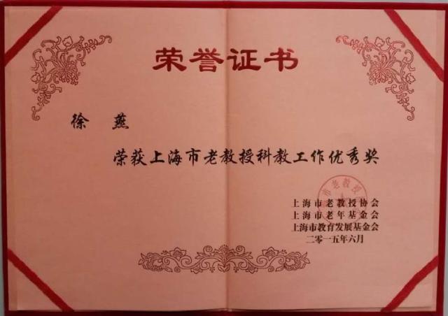 祝贺徐燕老师荣获“上海市老教授科教工作优秀奖”