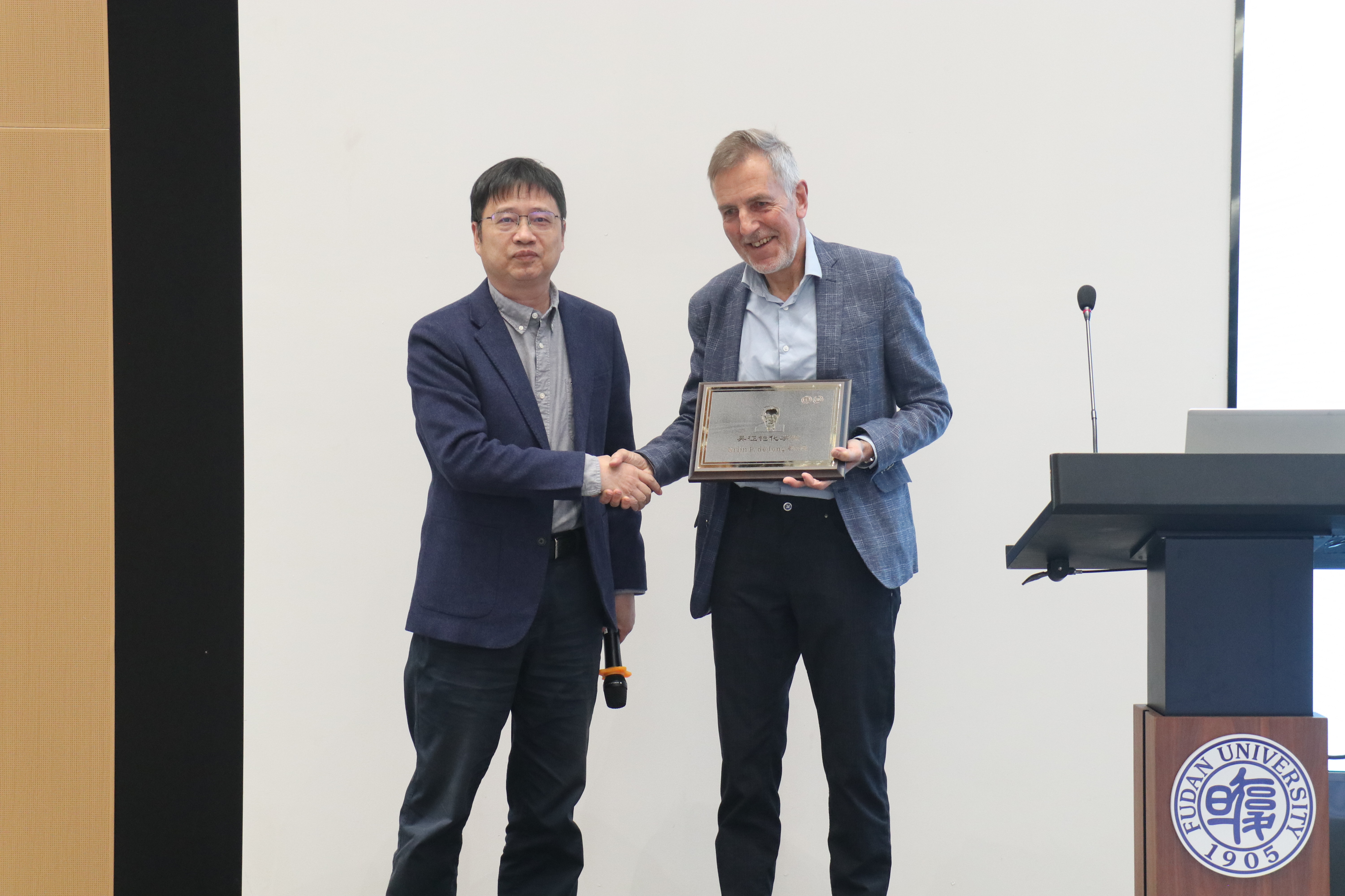 “近思讲坛”于2016年草莓视频 建系九十周年之际设立,旨在邀请化学研究领域的顶级科学家,分享自己对于科研工作的思考、认识和体会,奉献卓越智慧,帮助草莓视频 师生拓展科研视野,提升科研水平。草莓视频 周鸣飞教授代表“近思讲坛”组委会向Krijn P. de Jong教授颁发了“吴征铠化学奖”,以表彰Krijn P. de Jong教授在化学研究领域作出的卓越贡献。吴征铠化学奖由草莓视频 89级校友、雅本化学董事长蔡彤先生捐赠支持。