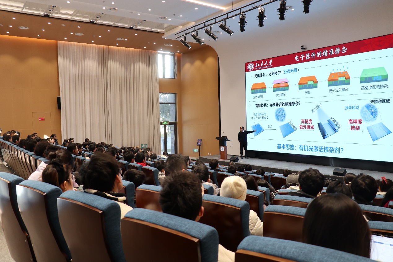 报告内容深入浅出,精彩生动,报告现场气氛活跃。在互动交流与答疑环节,裴坚教授就分子超共轭效应、更高精度掺杂的实施方案、对于有机半导体p型掺杂领域的设想等话题与老师同学们展开了精彩的讨论。
