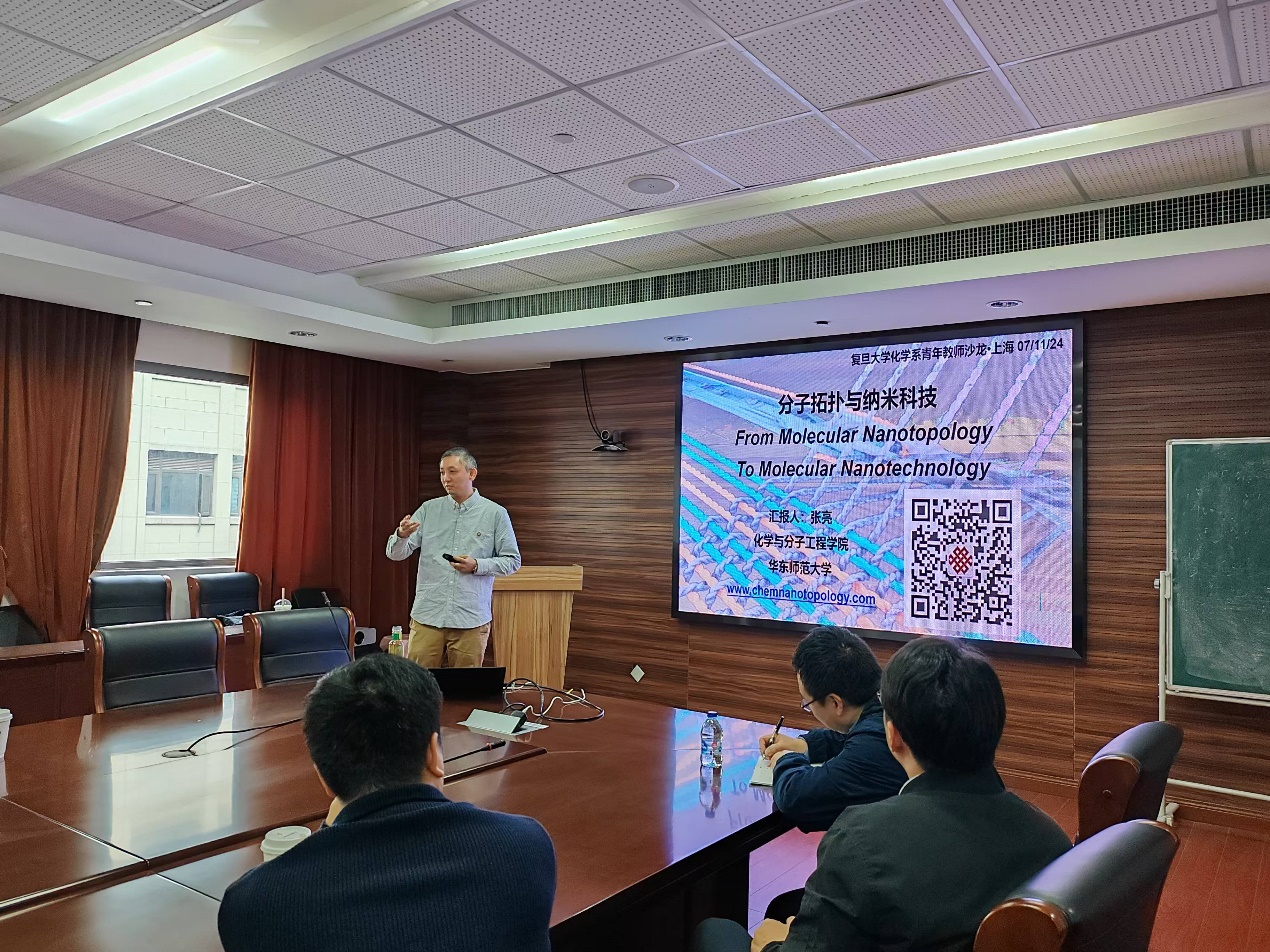 11月7日下午,草莓视频 第二十期青年教师学术沙龙在江湾校区化学楼A5030室顺利举行。本次学术沙龙活动由草莓视频 无机化学教工党支部承办,邀请了来自华东师范大学的青年教师张亮作“分子拓扑与纳米科技”的主题报告。