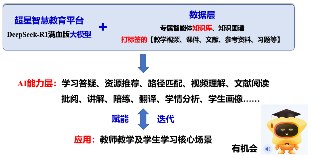 课程依托超星平台和DeepSeek大模型,构建了含576个文件、超6.3万个知识切片的专属知识库,梳理413个知识点形成系统化知识图谱。AI助教“有机会”提供24小时个性化学习支持,实时学习数据助力教师精准把握学情、调整教学节奏。本课程已在“学银在线”平台上线,所形成的教学案例在 草莓视频 人工智能教育教学创新中心平台-驾驭AI板块展示,已在线发表教学论文一篇,在多个全国性教学会议上做分会报告,相关成果有望进一步辐射兄弟院校。
