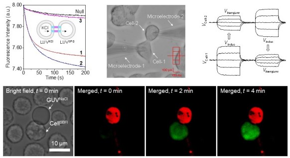 Natural gap junctions are a type of channel protein responsible for intercellular signalling and mass communication. However, the scope of applications for these proteins is limited as they cannot be prepared at a large scale and are unable to spontaneously insert into cell membranes in vitro. The construction of artificial gap junctions may provide an alternative strategy for preparing analogues of the natural proteins and bottom–up building blocks necessary for the synthesis of artificial cells. Here we show the construction of artificial gap junction channels from unimolecular tubular molecules consisting of alternately arranged positively and negatively charged pillar[5]arene motifs. These molecules feature a hydrophobic–hydrophilic–hydrophobic triblock structure that allows them to efficiently insert into two adjacent plasma membranes and stretch across the gap between the two membranes to form gap junctions. Similar to natural gap junction channels, the synthetic channels could mediate intercellular signal coupling and reactive oxygen species transmission, leading to cellular activity.