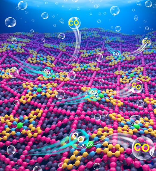 Electrochemical CO2 reduction (CO2R) is a sustainable way of producing carbon-neutral fuels, yet the efficiency is limited by its sluggish kinetics and complex reaction pathways. Developing active, selective, and stable CO2R electrocatalysts is challenging and entails intelligent material structure design and tailoring. Here we show a graphdiyne/graphene (GDY/G) heterostructure as a 2D conductive scaffold to anchor monodispersed cobalt phthalocyanine (CoPc) and reduce CO2 with an appreciable activity, selectivity, and durability. Advanced characterizations, e.g., synchrotron-based X-ray absorption spectroscopy (XAS), and density functional theory (DFT) calculation disclose that the strong electronic coupling between GDY and CoPc, together with the high surface area, abundant reactive centers, and electron conductivity provided by graphene, synergistically contribute to this distinguished electrocatalytic performance. Electrochemical measurements revealed a high FECO of 96% at a partial current density of 12 mA cm–2 in a H-cell and an FECO of 97% at 100 mA cm–2 in a liquid flow cell, along with a durability over 24 h. The per-site turnover frequency of CoPc reaches 37 s–1 at −1.0 V vs RHE, outperforming most of the reported phthalocyanine- and porphyrin-based electrocatalysts. The usage of the GDY/G heterostructure as a scaffold can be further extended to other organometallic complexes beyond CoPc. Our findings lend credence to the prospect of the GDY/G hybrid contributing to the design of single-molecule dispersed CO2R catalysts for sustainable energy conversion.