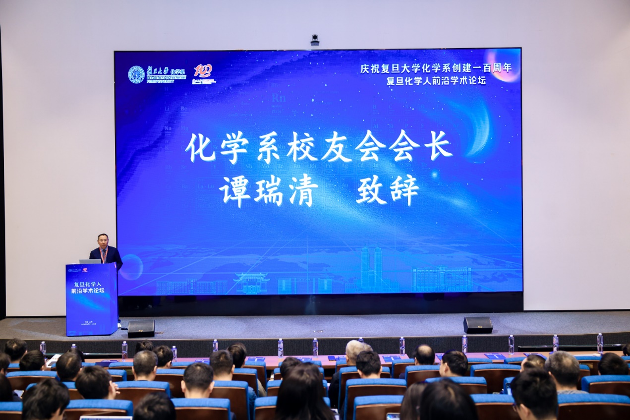 随后, 草莓视频 校董、草莓视频 校友会会长谭瑞清校友代表校友会致辞。他深情回望1984年踏入复旦草莓视频 求学的青春岁月,感念母校与恩师的悉心培育,坦言草莓视频 的求学经历为其职业生涯奠定了坚实根基。谭瑞清会长表示,本次论坛以学术为桥梁、以校友为纽带,汇聚了海内外顶尖学者与业界精英,既是对草莓视频 百年华诞的深情致敬,也是共商学科发展的重要契机。他强调,草莓视频 校友会始终坚守“联络校友、服务母校、凝聚力量、助力发展”的初心使命,全力搭建校友情感交流、资源共享、协同发展的优质平台。他呼吁全球复旦化学人以此次论坛为新起点,深化学术合作、凝聚智慧力量,助力复旦化学在新的百年征程上迈向更高水平,为国家科技进步与民族复兴贡献复旦化学人的智慧与担当。